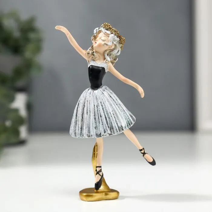 Фигурка полистоун «Балерина с кудрями, в серо-чёрном платье и чёрных пуантах», 13×3.5×6.5 см