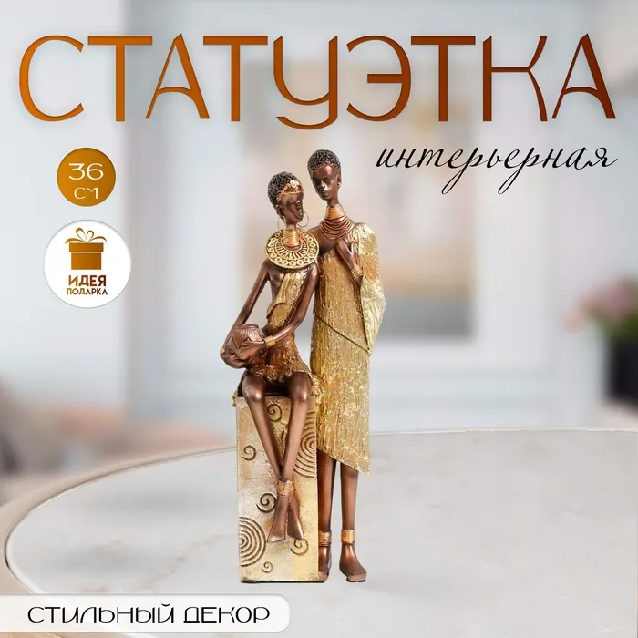 Фигурка полистоун «Африканская пара», золото узор — круги, 14×11×36 см