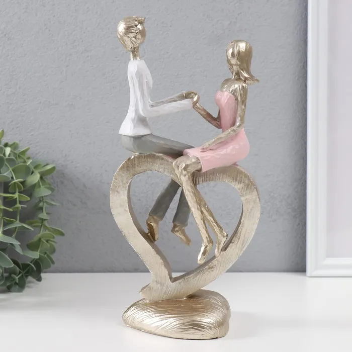 Фигурка полистоун «Влюблённая пара сидит на сердце», 13×10.5×27 см