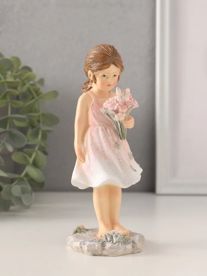 Фигурка полистоун «Малышка в розовом сарафане, с букетом», 6.5×6×15 см
