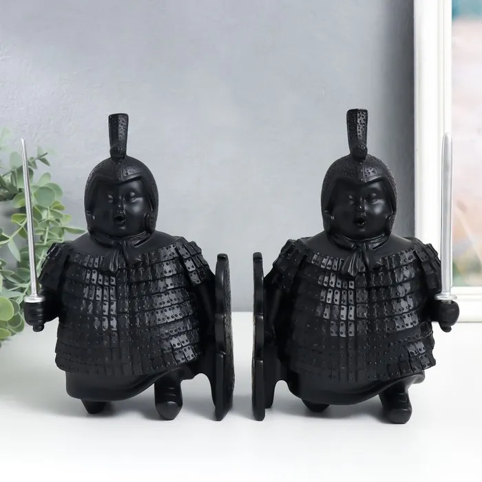 Сувенир полистоун "Терракотовый воин с мечом и щитом" набор 2 шт чёрный 9х13х20 см