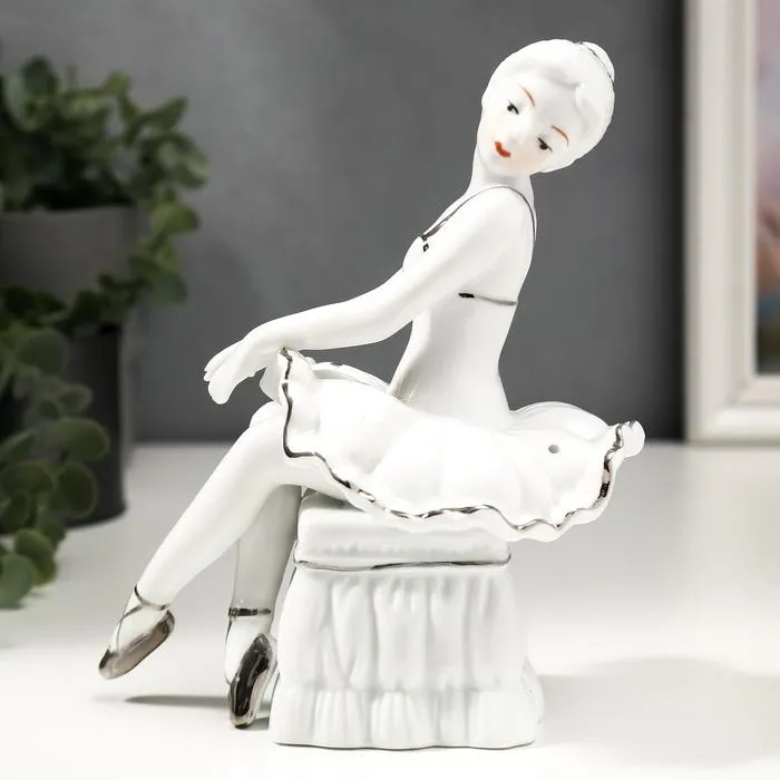 Сувенир керамика "Балерина на пуфике" белый с серебром 18х10х15,5 см