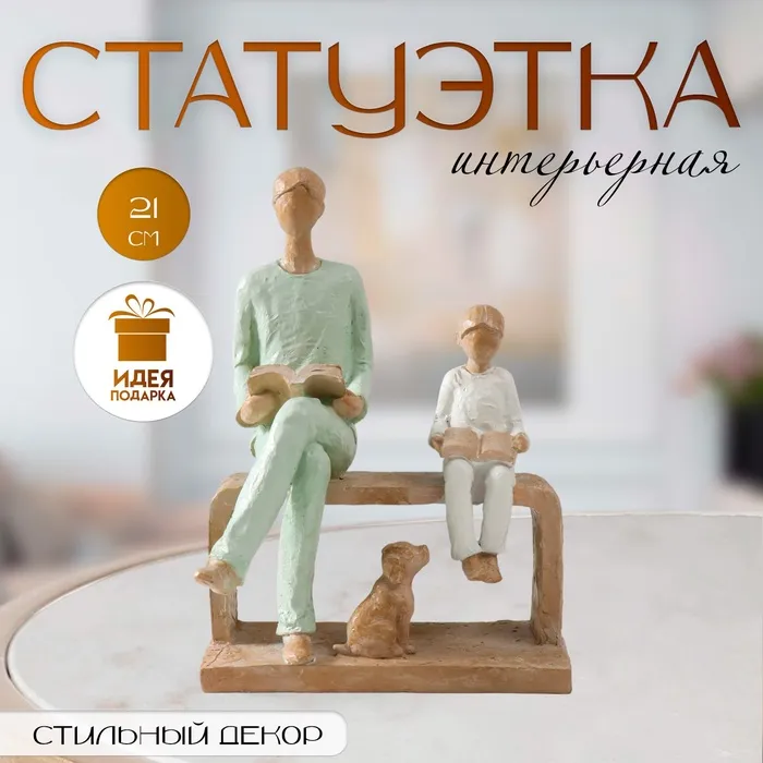 Фигурка полистоун «Отец и сын. Чтение», бело-зелёный, 15.5×12×21 см