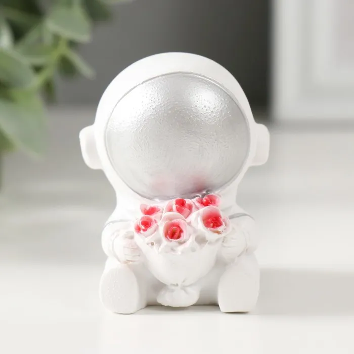 Фигурка полистоун «Астронавт в белом скафандре с серебряным шлемом с букетом роз», 6×5×4.5 см