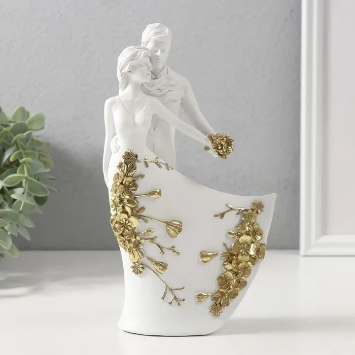 Сувенир полистоун "Белоснежная пара с золотыми цветами" 12х5,5х20,5 см