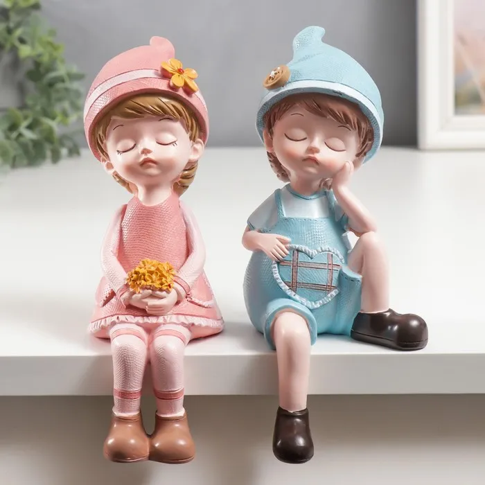 Фигурка полистоун «Мальчик. Девочка спит сидя», 8×6×19.5 см, МИКС
