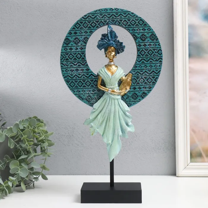 Фигурка полистоун «Девушка в африканском головном уборе», сине-голубой, 21×7.5×38.5 см