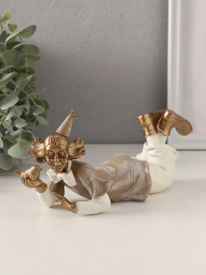 Фигурка полистоун «Клоун с птичкой в ладони», бело-бежевый, 20.5×7×8.5 см