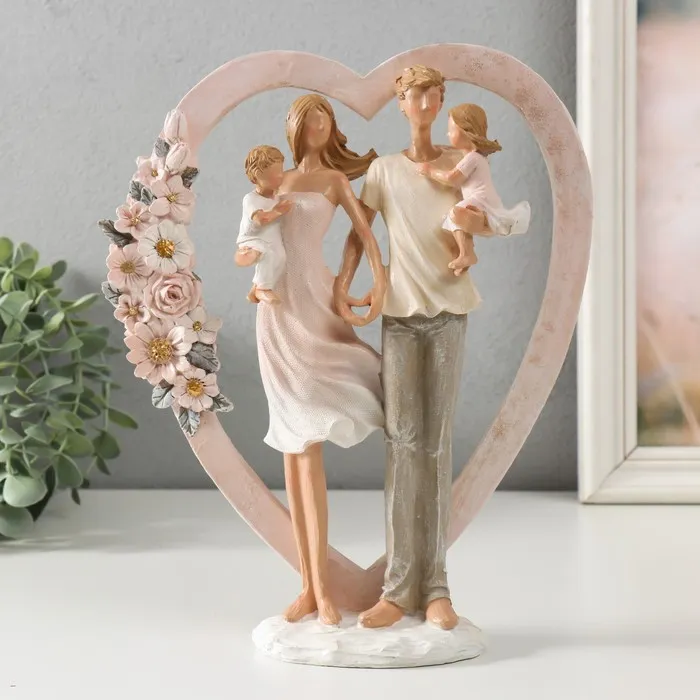 Фигурка полистоун «Семья у сердца с цветами», 22×7×26.5 см