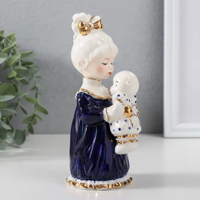 Сувенир керамика "Малышка в ночной рубашке с медвежонком" кобальт 7х7,5х16,5 см