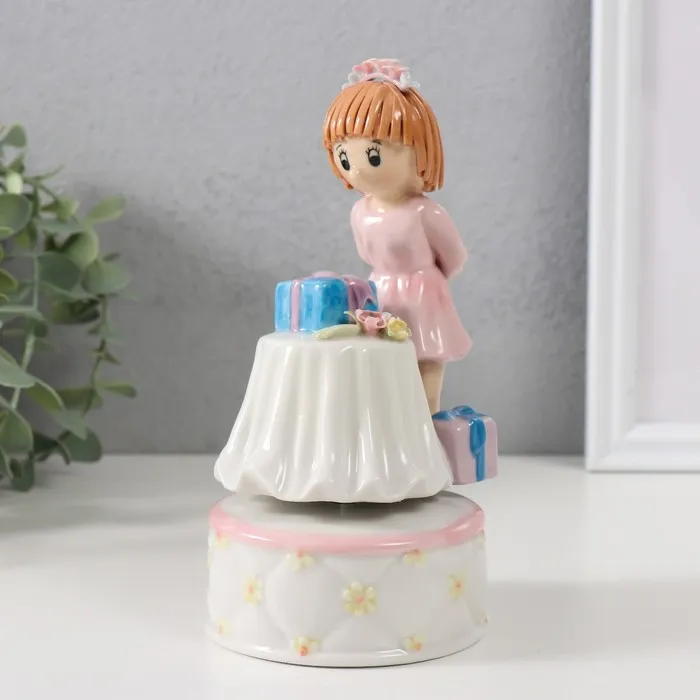 Сувенир керамика музыкальный "Девочка у столика с подарками" 9х9,5х17,5 см