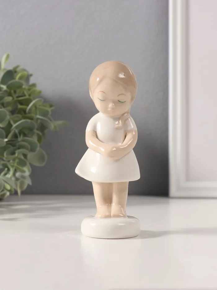 Сувенир керамика "Малышка скромница в белом платьице" 4х5х12 см