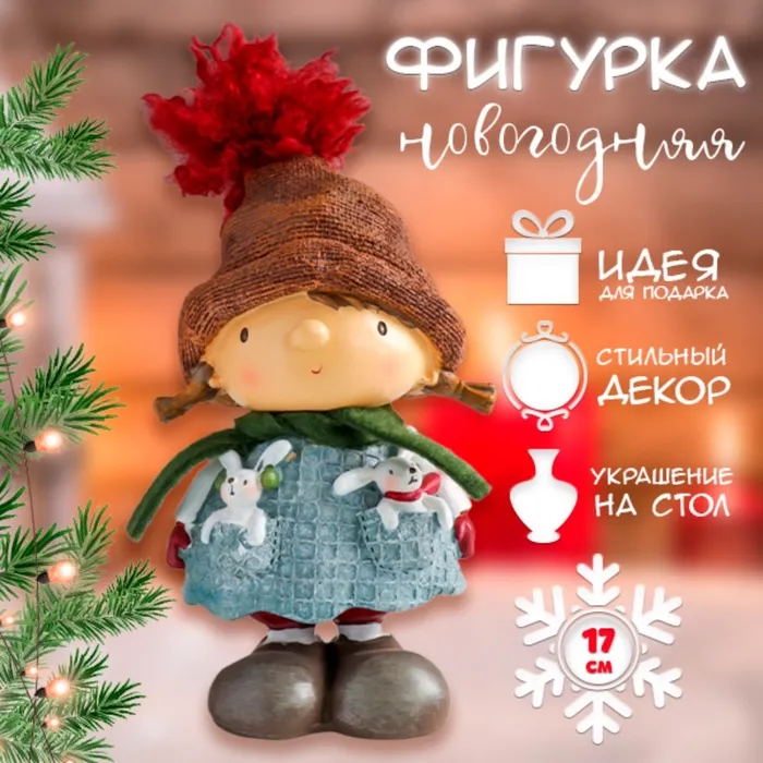 Фигурка новогодняя полистоун «Девочка в платье с зайчиками в кармашках», 9,5х7,5х17 см