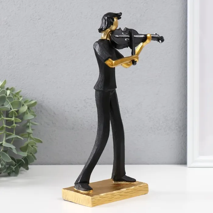 Сувенир полистоун "Скрипач" чёрный с золотом 16,5х7,5х26,5 см