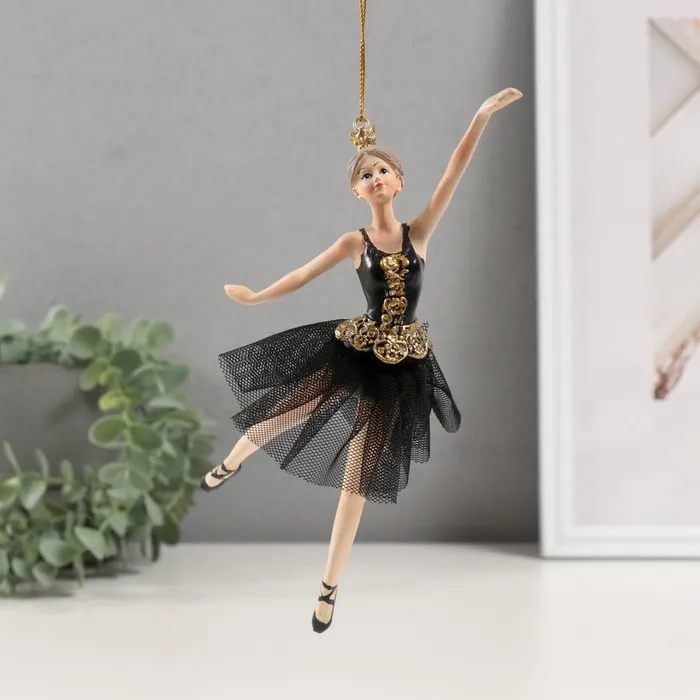 Сувенир полистоун подвеска "Балерина в черном платье - полёт" 9х4х21,5 см