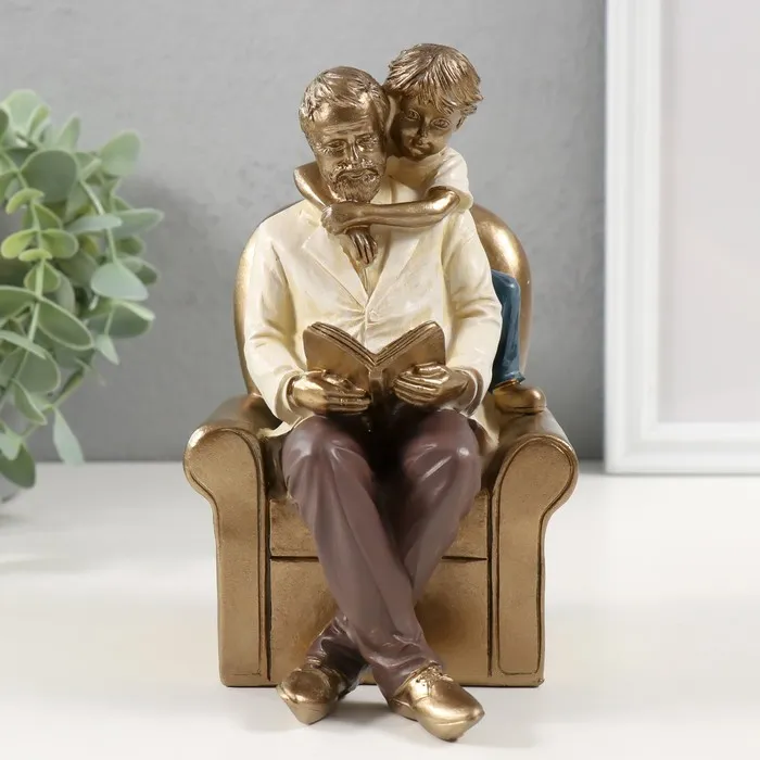 Сувенир полистоун "Уютный вечер с дедушкой за книгой" 13х10,5х16,5 см