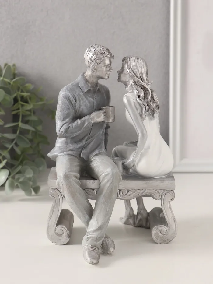 Фигурка «Парочка: свидание за чашечкой кофе», полистоун, бело-голубой, 13.5×12.5×18.5 см