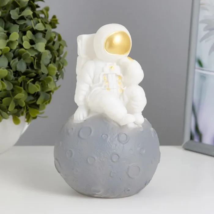 Фигурка светящаяся RISALUX «Космонавт на луне», LED-ночник, от батареек 3×LR44, бело-чёрный, 10×10×17 см