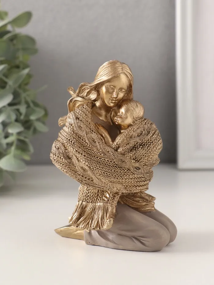 Фигурка полистоун «Мама с малышом, укутанные в шарф», 8.5×6.5×12 см