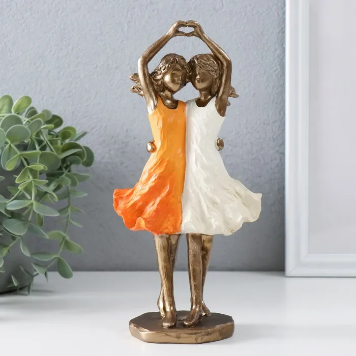 Сувенир полистоун "Две сестры" бронза, оранжево-белый 10,5х6,5х21,5 см