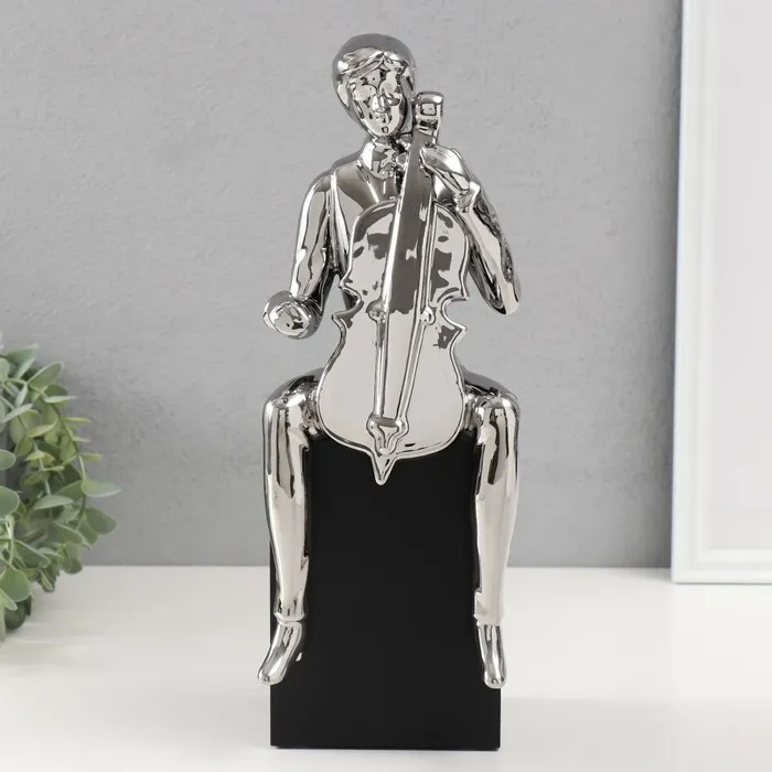 Сувенир керамика "Мальчик с виолончелью" серебро 11,5х12х34 см