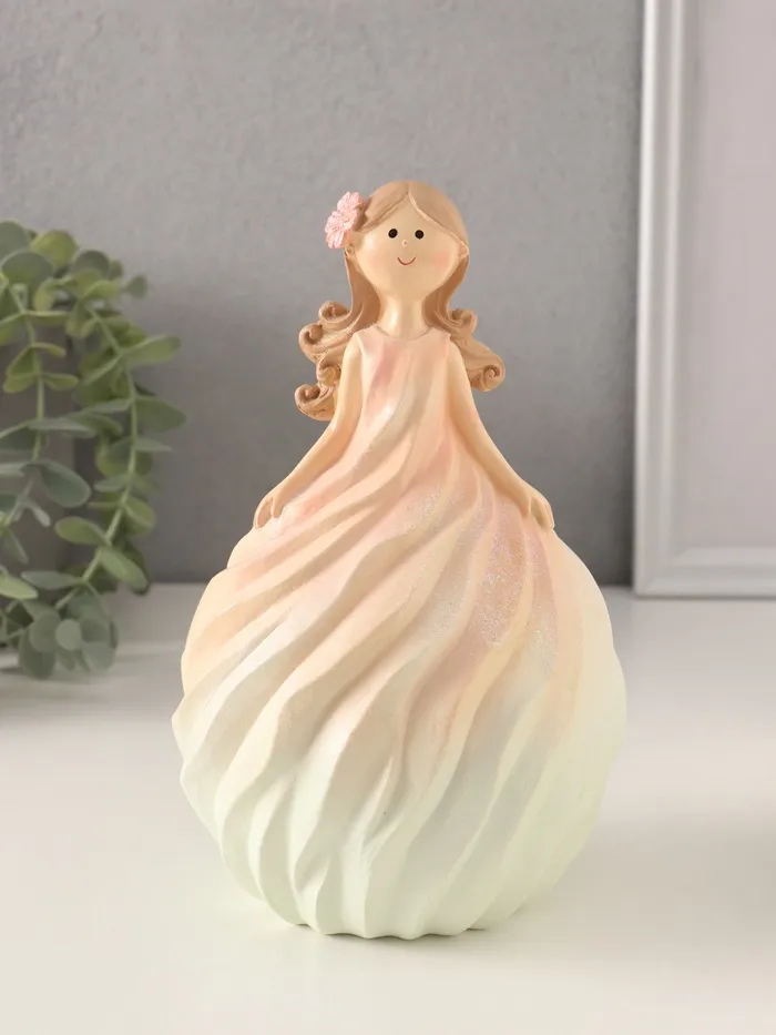 Фигурка полистоун «Девочка-зефирка с цветком в волосах», розово-жёлтый, 11.5×10.5×18.5 см
