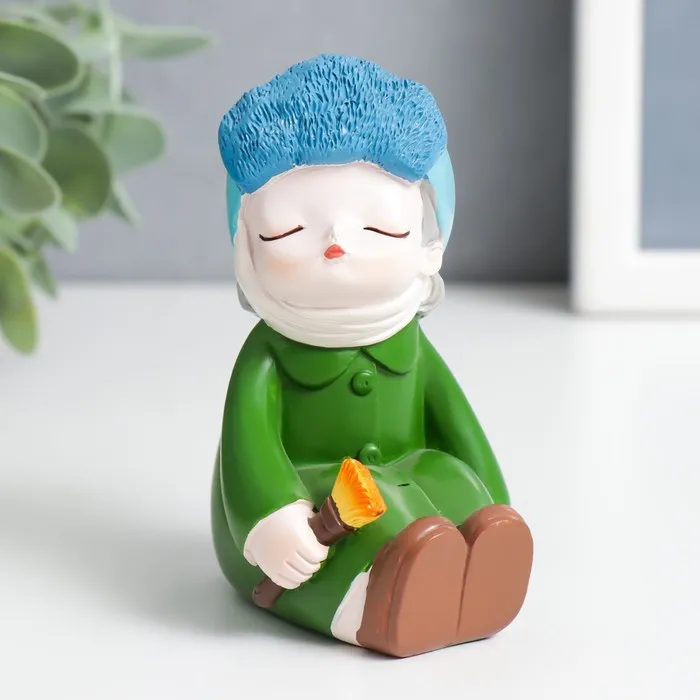 Сувенир полистоун "Малыш в зелёном пальто с забинтованным ухом" 5.5х9.5х6 см
