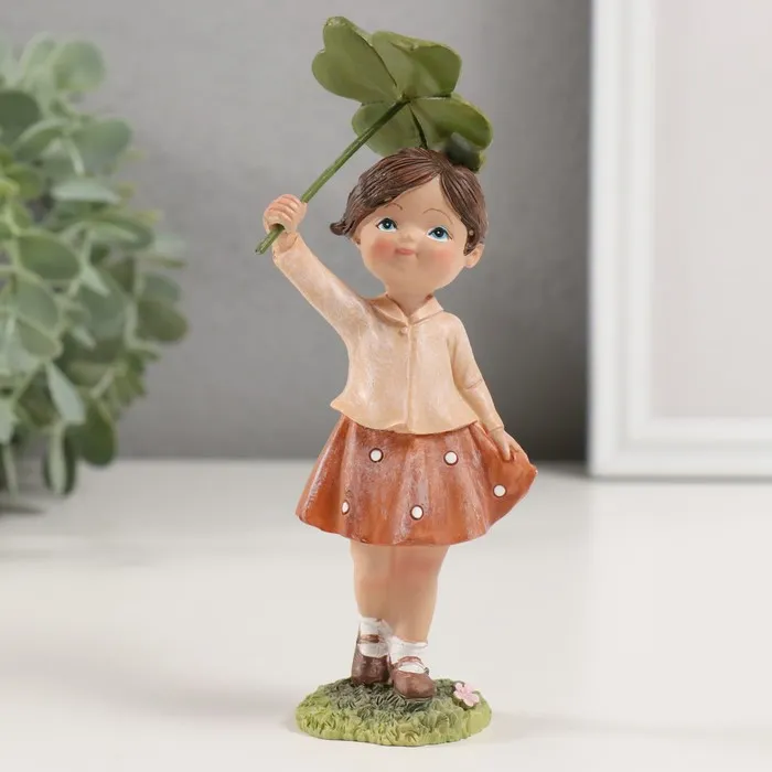 Сувенир полистоун "Малышка с зелёным клевером" 6,5х5,5х15,5 см