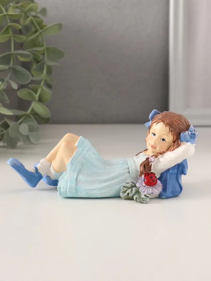 Фигурка полистоун «Малышка лежит на полянке, с рюкзаком», 14×6.5×7 см