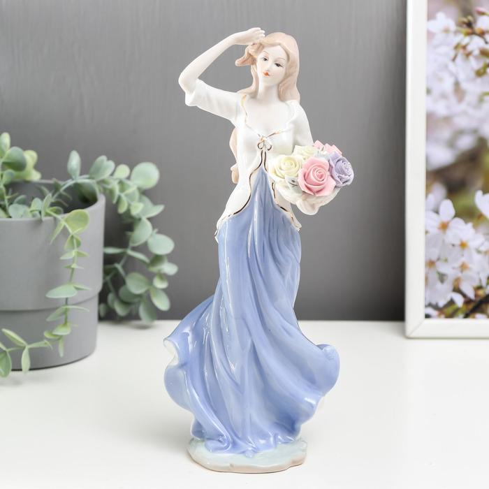 Фигурка керамика «Девушка в голубом с корзиной роз», 30×9×11.5 см