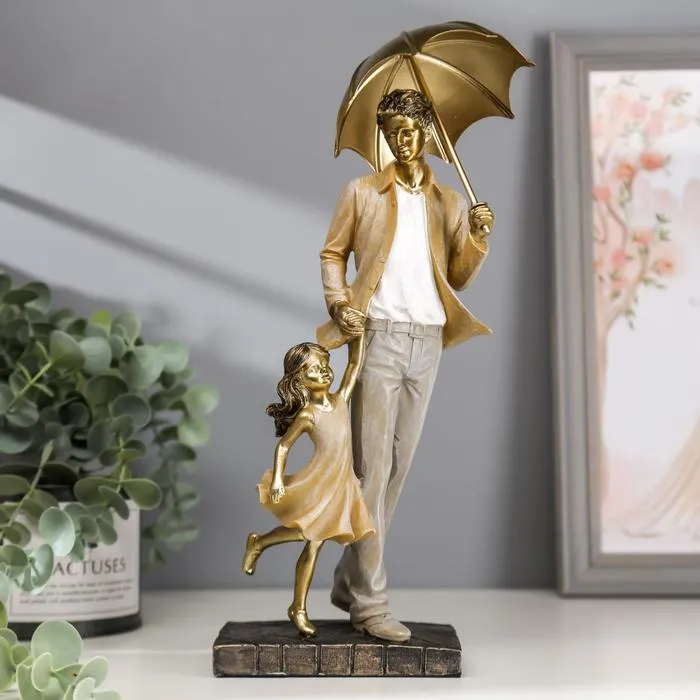 Фигурка полистоун «Папа с дочкой на прогулке под зонтом», бежевый, 28×11×8 см