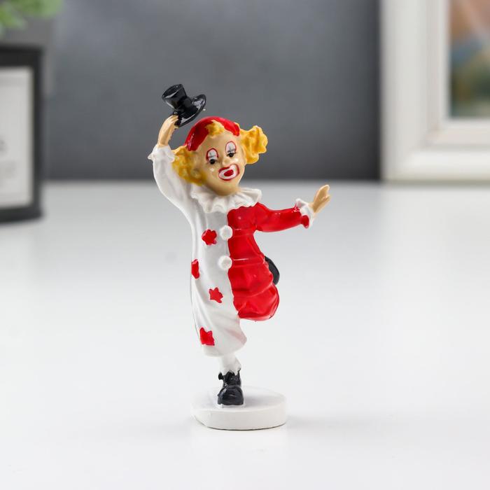 Фигурка полистоун «Танцующий клоун с цилиндром», красно-белый, 8×3×4.5 см