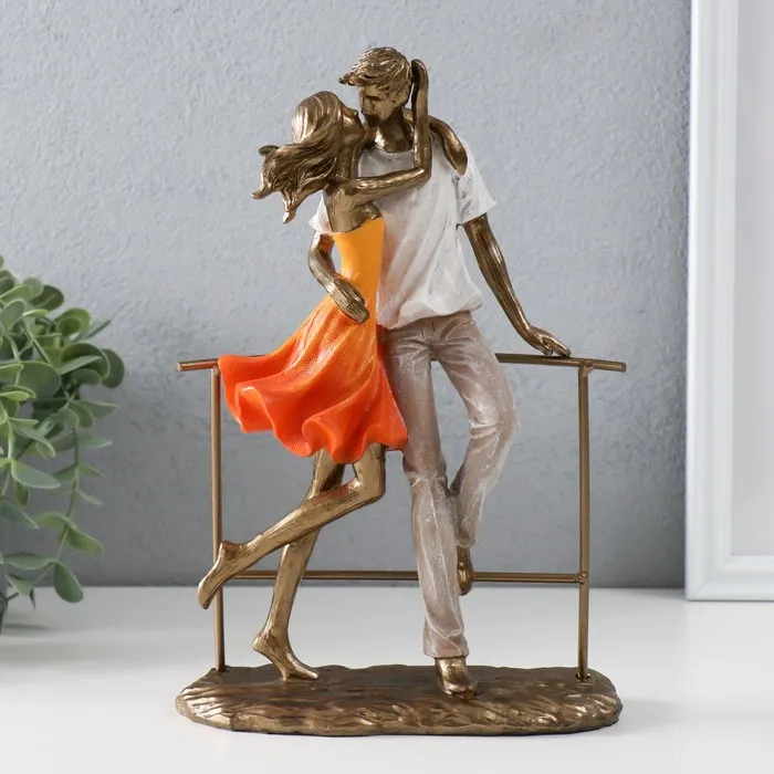 Фигурка полистоун «Поцелуй на мосту», бронза, оранжево-белый, 17×8×25 см