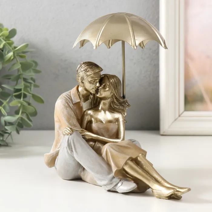Сувенир полистоун "Влюблённая пара под зонтом - нежность" бежевый 18х18х10 см