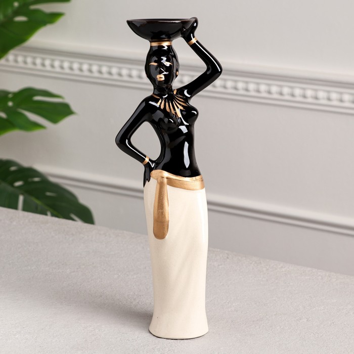 Статуэтка «Эфиопка с тарелкой», 32 см, керамика, чёрно-белая