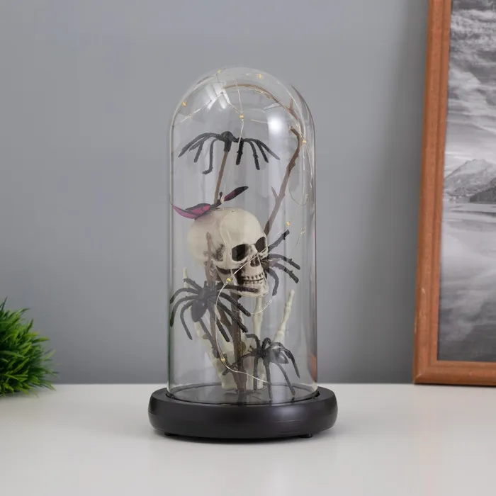 Фигурка светящаяся колба RISALUX «Череп с пауками», LED-ночник, 1.5 Вт, 3×AAA, чёрный, USB, 11×11×21 см