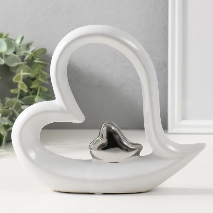 Сувенир керамика "Сердце в сердце" белый с серебром 20,5х4х18 см