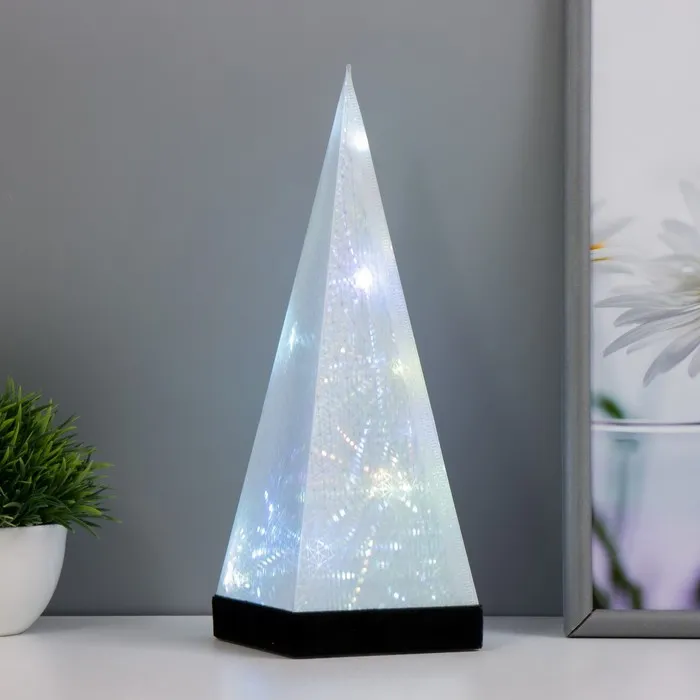 Фигурка световая RISALUX «Снежная пирамида. Салют», LED-ночник, RGB, от батареек 3×ААА, USB, 9×9×28 см