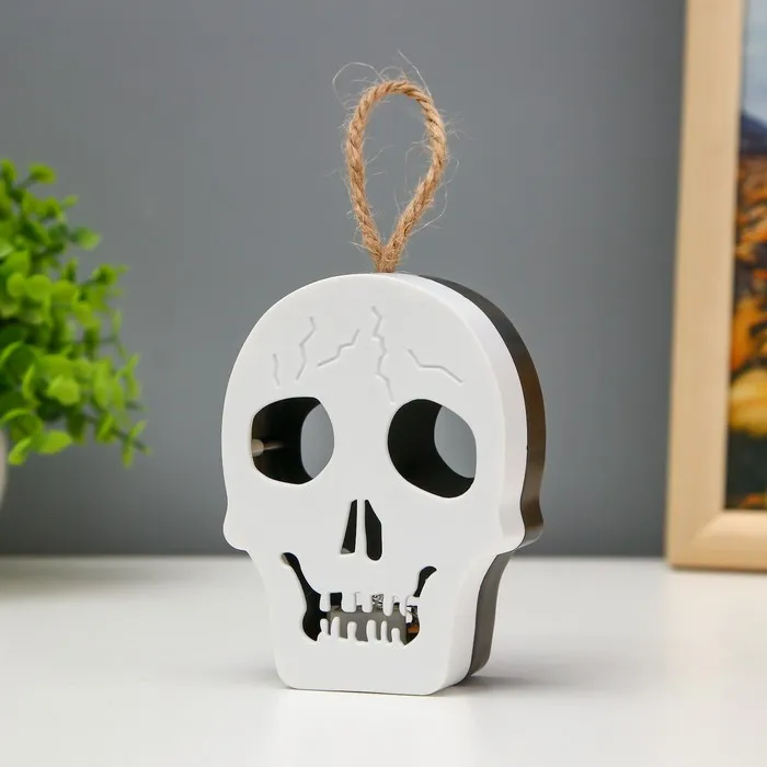 Фигурка светящаяся RISALUX «Череп», LED-ночник, 1 Вт, RGB, от батареек LR1130, бело-чёрный, 9.5×4×5 см