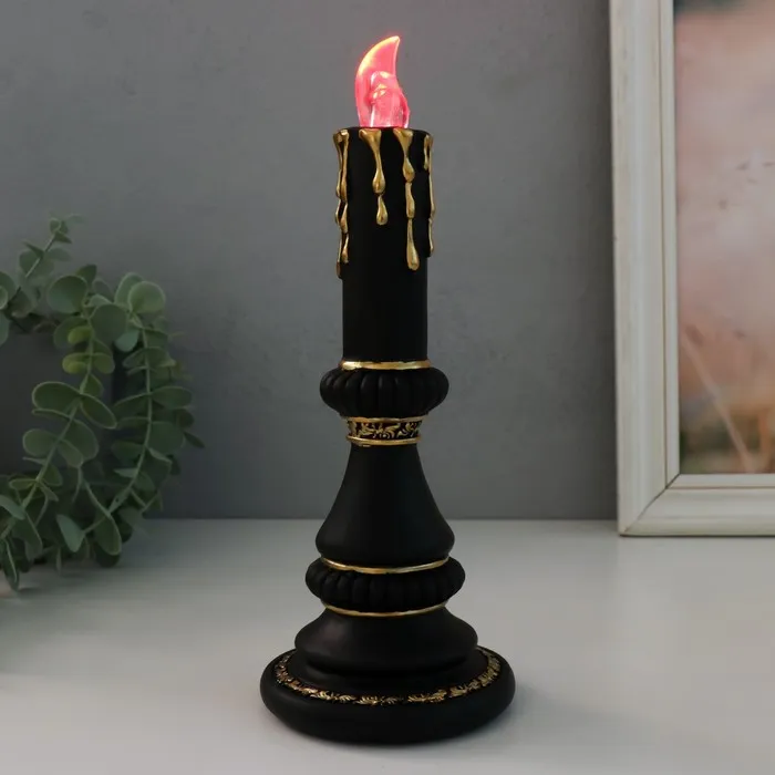Световая фигурка полистоун «Свеча светодиодная», LED, 2×LR=44, чёрный с золотом, 10×10×24.5 см