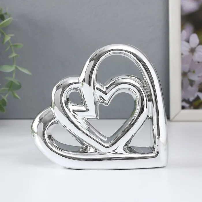 Сувенир керамика "Сплетённые сердца" серебро 12,3х3,5х11,8 см