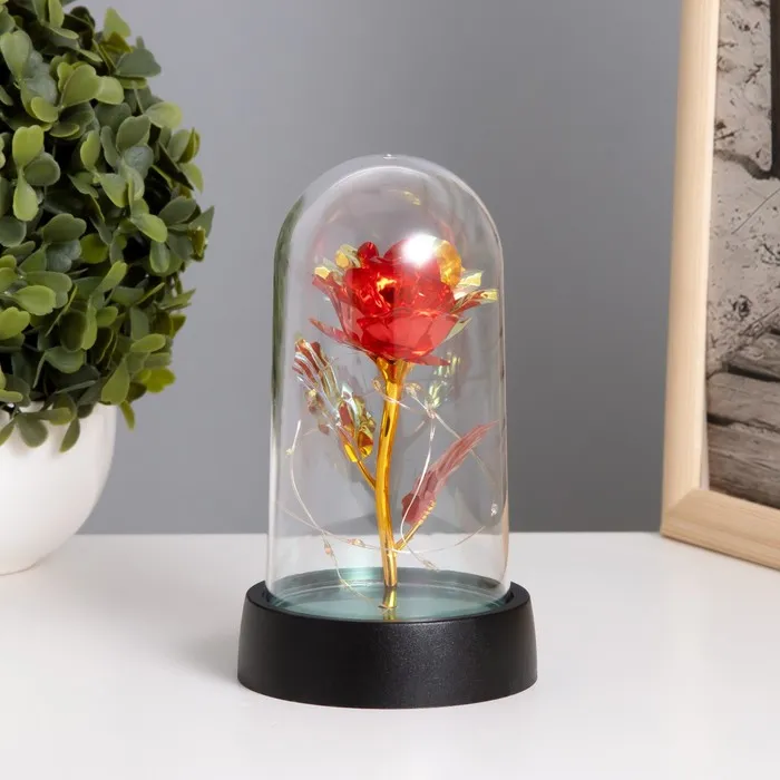 Фигурка световая в колбе RISALUX «Цветок», LED-ночник, 3×AG10, красный, 8.5×8.5×15.5 см