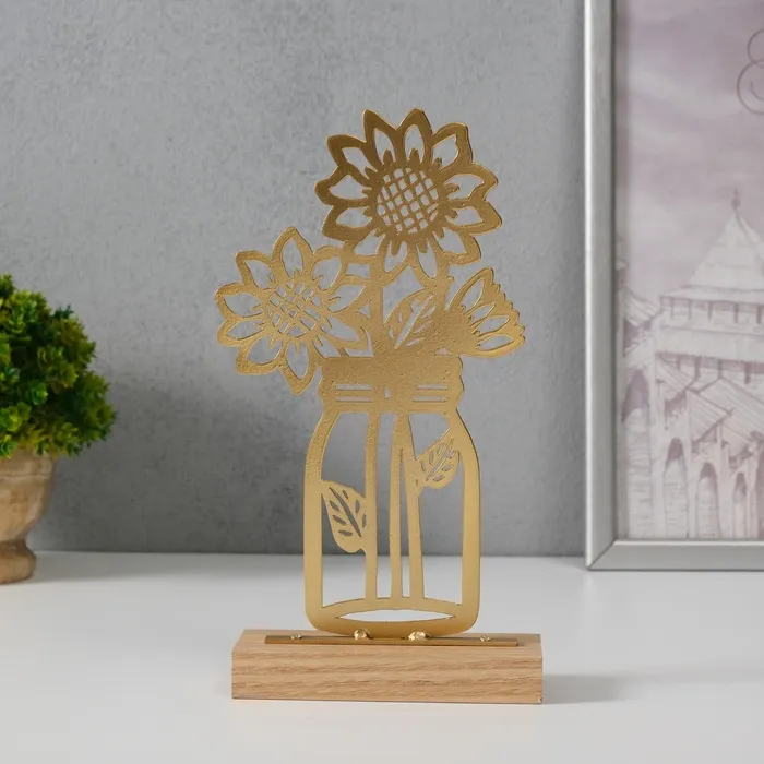 Фигурка металл «Подсолнухи в банке», золото, 5×11.5×22 см