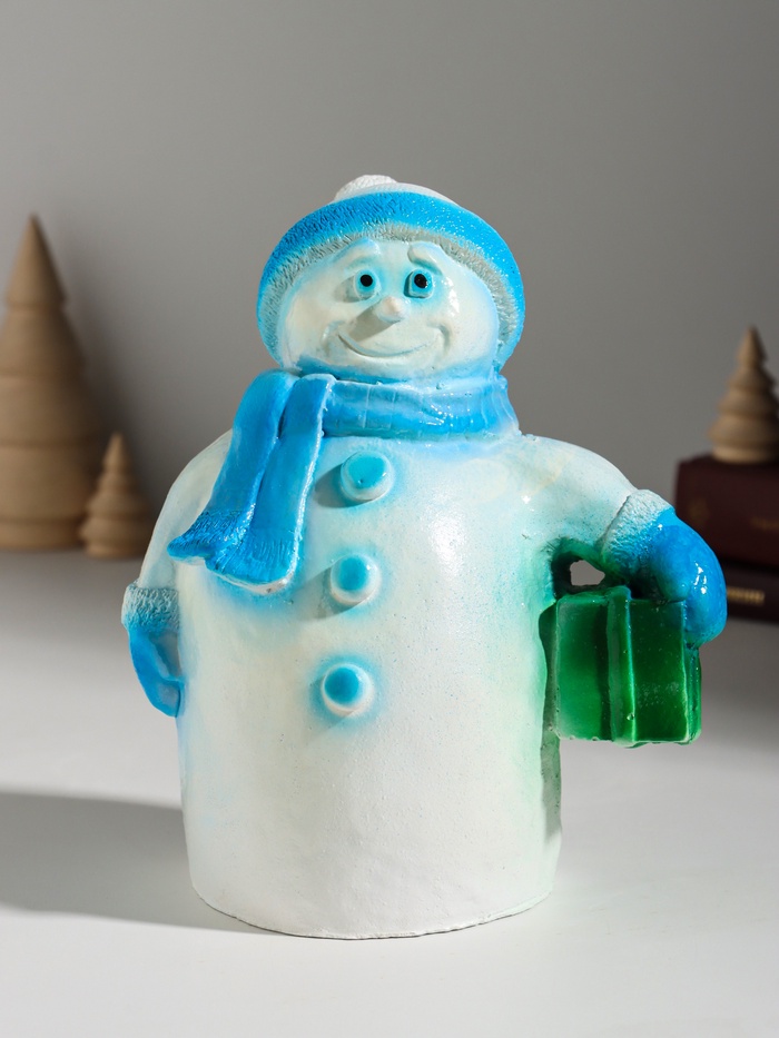Фигурка гипс «Снеговик новгодний с подарком», 19 см, голубой