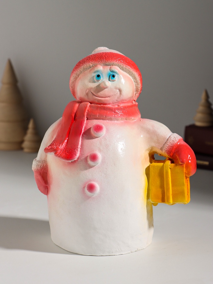 Фигурка гипс «Снеговик новгодний с подарком», 19 см, красный