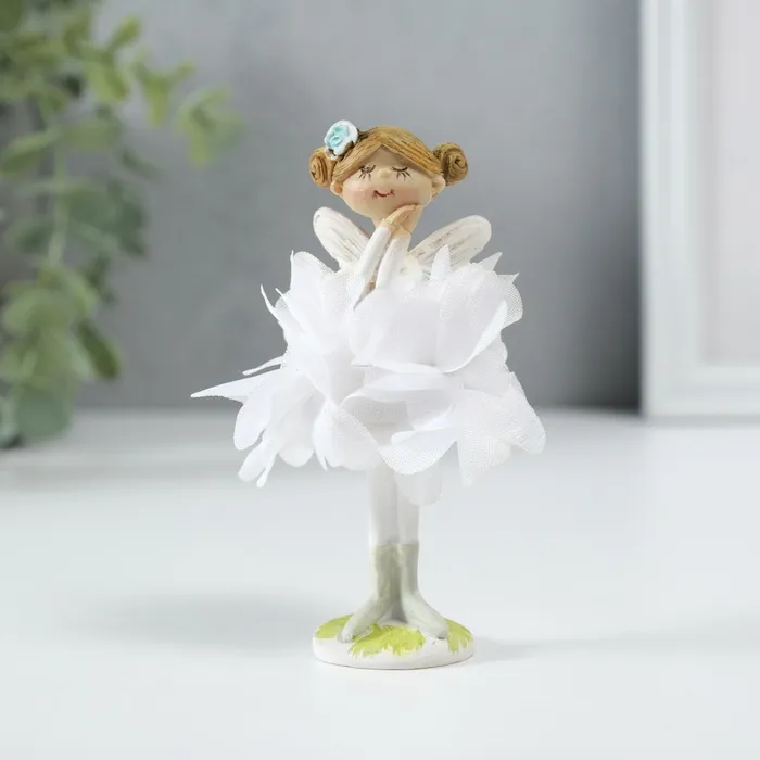 Сувенир полистоун "Девочка в платье из белых цветов" 6х5х10,5 см
