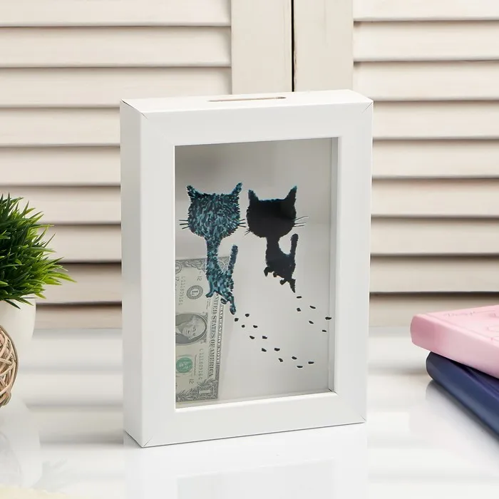 Интерьерная копилка для купюр и монет «Кошки и следы», пластик, 17×12×3.8 см