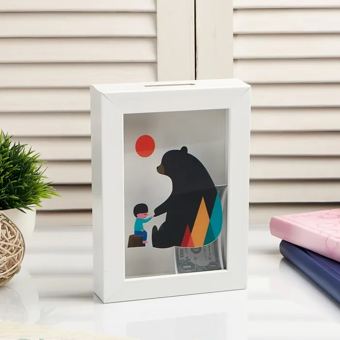 Интерьерная копилка для купюр и монет «Малыш и медведь», пластик, 17×12×3.8 см