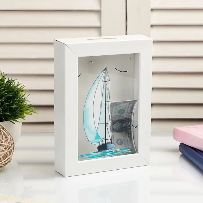 Интерьерная копилка для купюр и монет «Парусник», пластик, 17×12×3.8 см