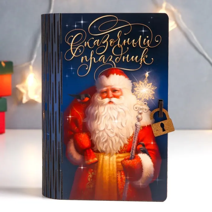 Деревянная копилка-книга для денег «Новогодний Дедушка Мороз», для купюр, монет, 13×10×5 см